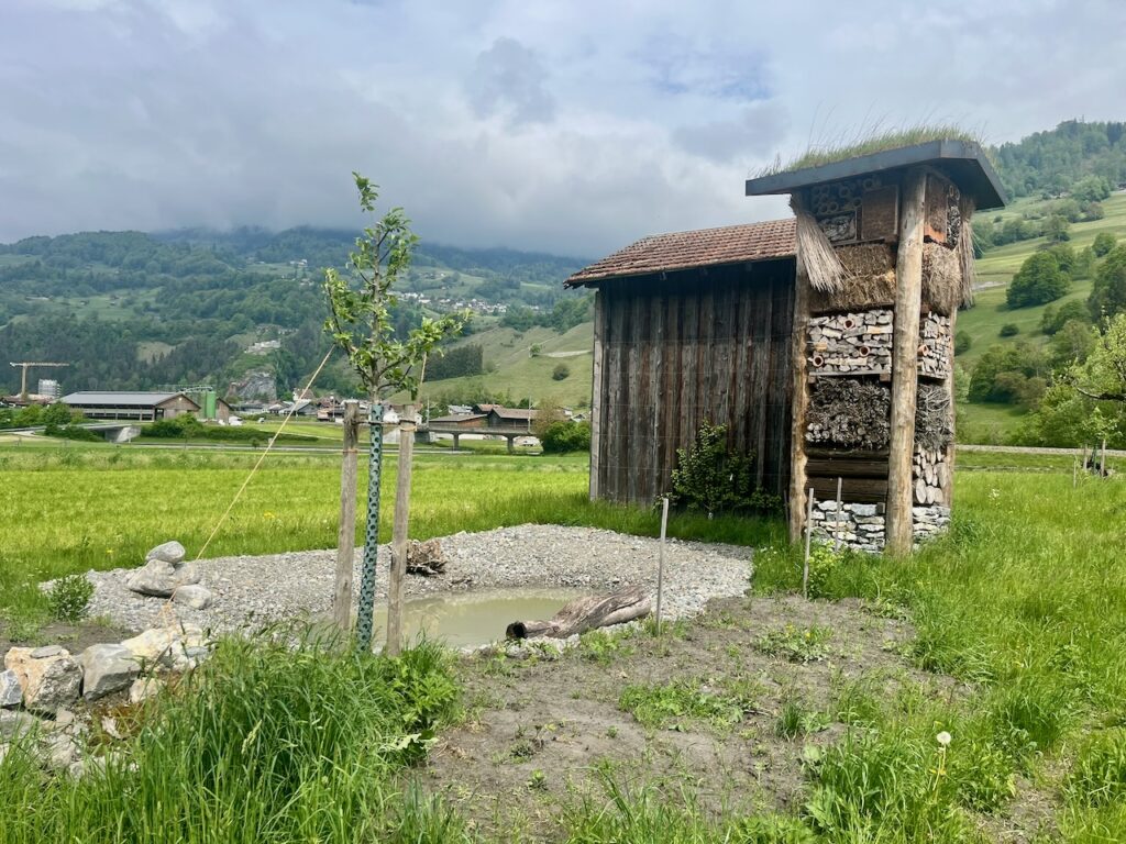Im nordwestlichen Teil des Gebiets wurde ein vielfältiger Obstgarten mit 26 Hochstammobstbäumen angelegt, ergänzt durch zahlreiche Kleinstrukturen und einen «Lebensturm», der wertvolle Unterschlupfmöglichkeiten für Kleintiere, Wildbienen und andere Insekten bietet.